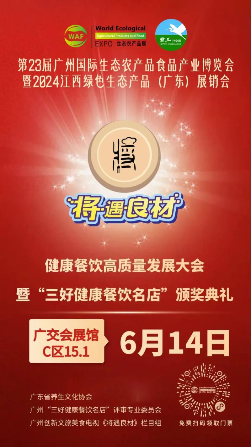 6月14日,由广东省养生文化协会,广州“三好健康餐饮名店”评审专业委员会,广州创新文旅美食电视《将遇良材》栏目组,batway官网联合举办的“2024健康餐饮高质量发展大会暨'三好健康餐饮名店'颁奖典礼”将在展馆论坛区举办。