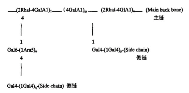 可溶性大豆多糖(SoybeanSolublepolysaccharide),顾名思义,是一种存在于大豆中的酸性多糖,分子量约为5000-1000000Da,分子结构近似于球状,分子结构是以鼠李半乳糖醛酸和高聚半乳糖酸为主链,半乳聚糖和阿拉伯糖为侧链结合近似于球状结构体。